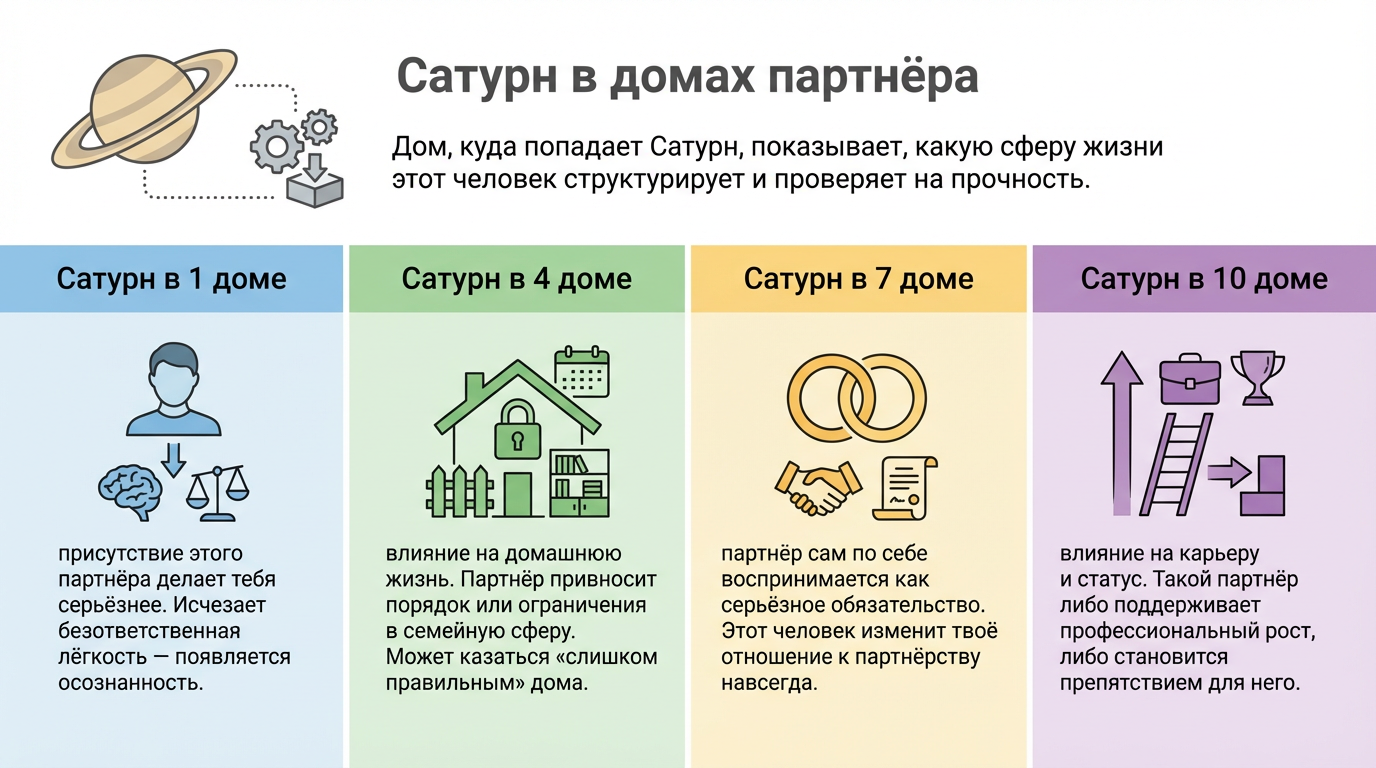 Сатурн в синастрии — сигнал серьёзных, структурирующих отношений. Но полная картина складывается только из всей синастрии целиком.