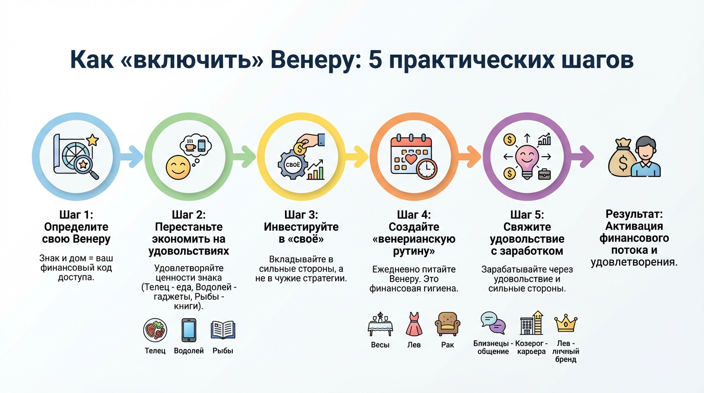 Теория без практики не работает. Венера — не абстрактная концепция, а конкретный инструмент, который можно «включить» через осознанные действия. Вот пошаговый план: