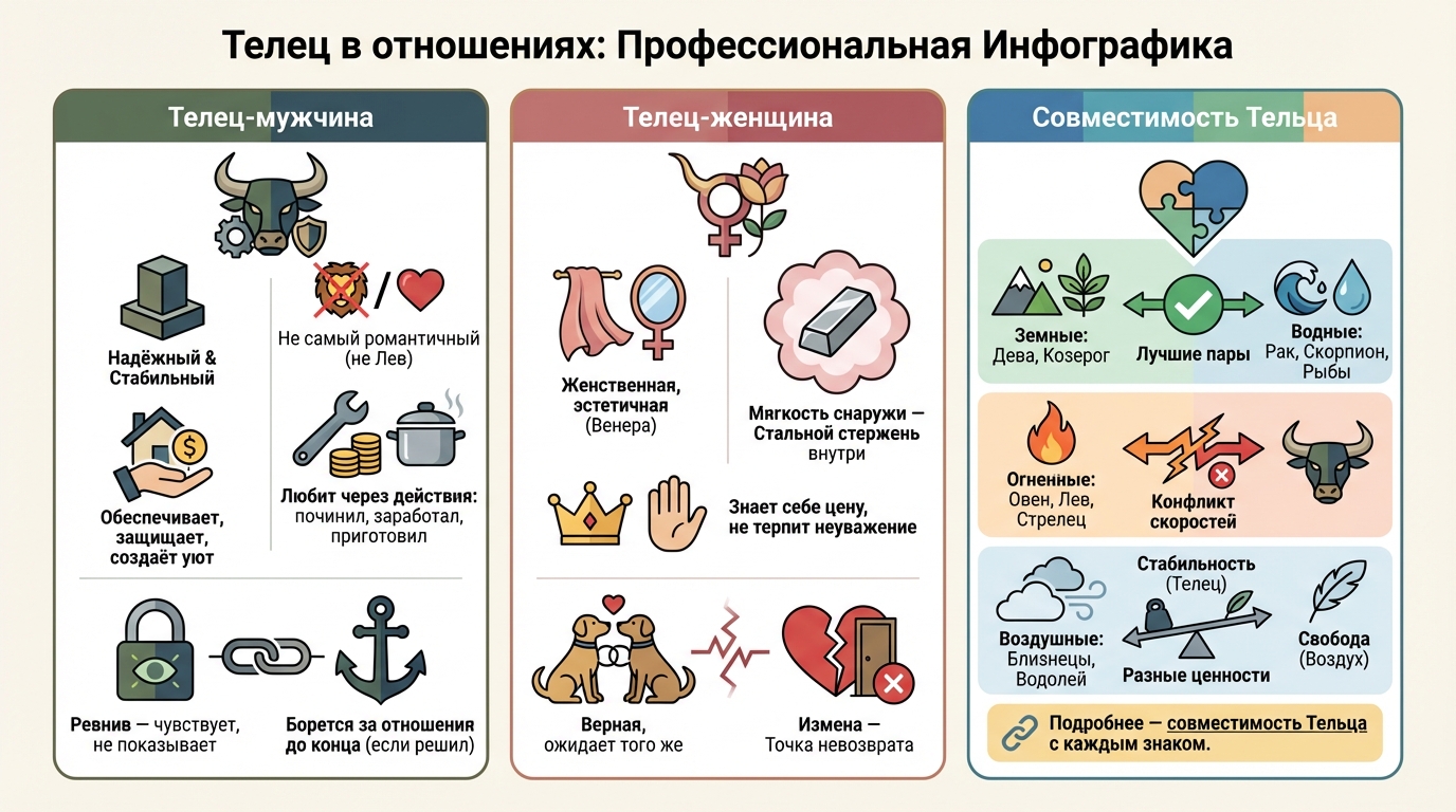 Дата публикации: март 2026 Категория: ZODIAC Связанные статьи: Совместимость Тельца, Гороскоп Телец 2026, Венера в натальной карте